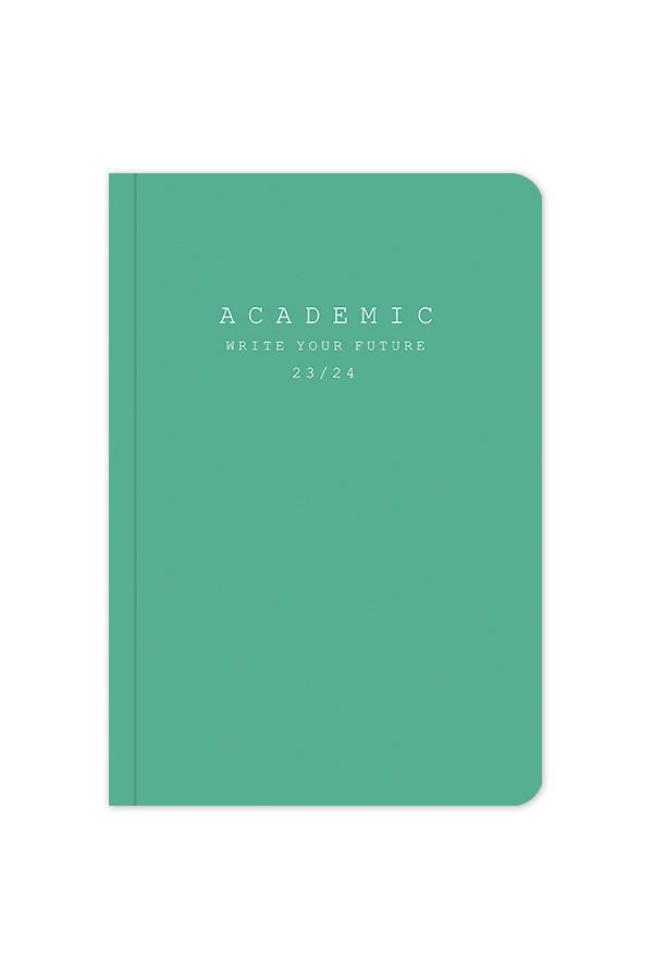 Academic diary with flexible cover and velvet texture. Flexible binding with rounded book corners.