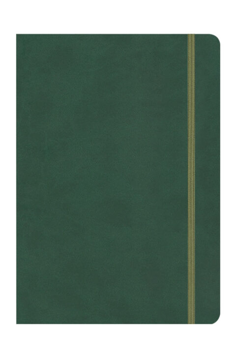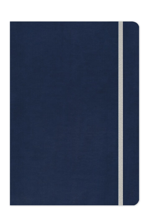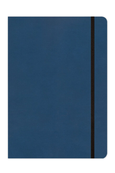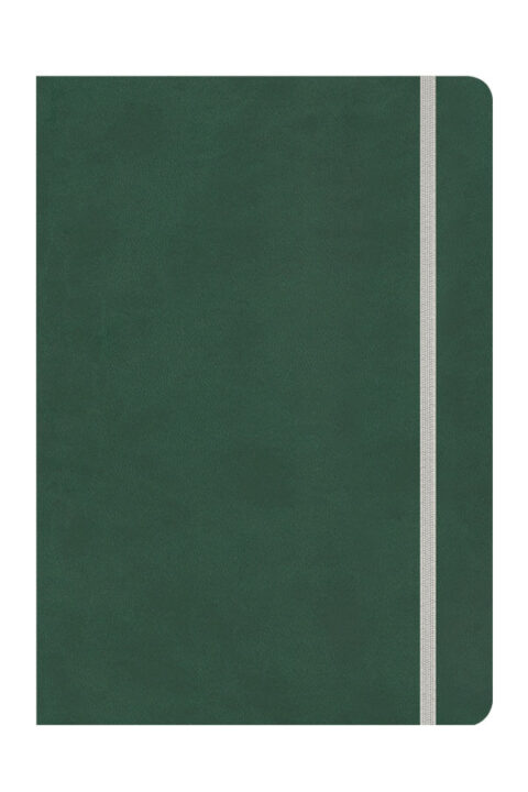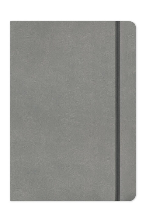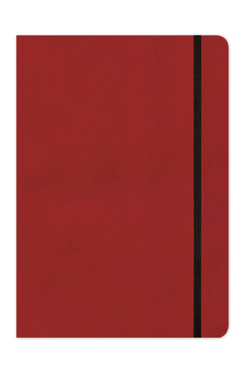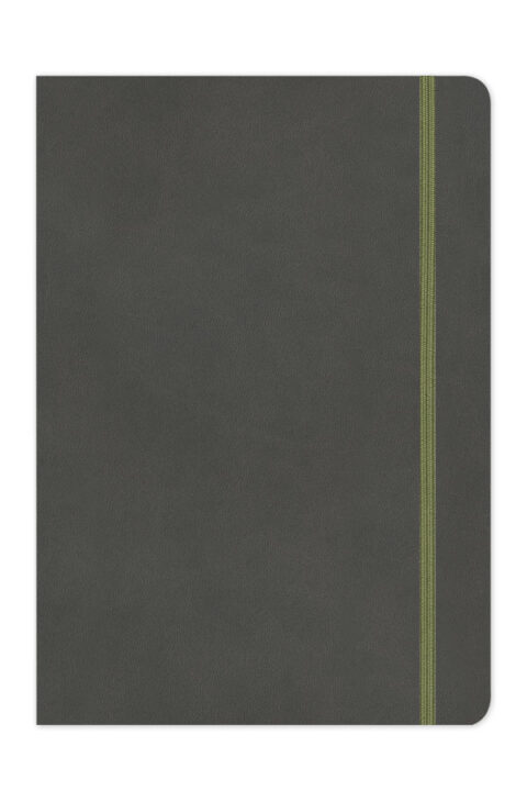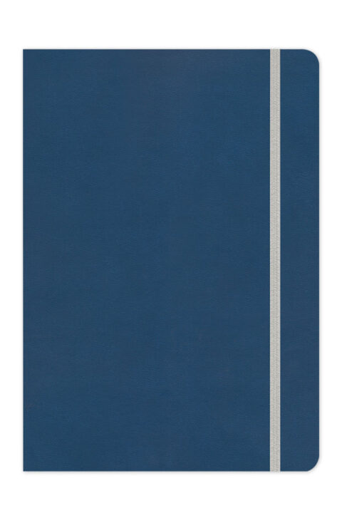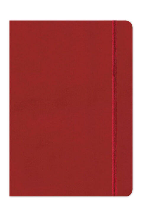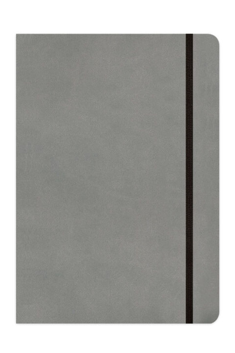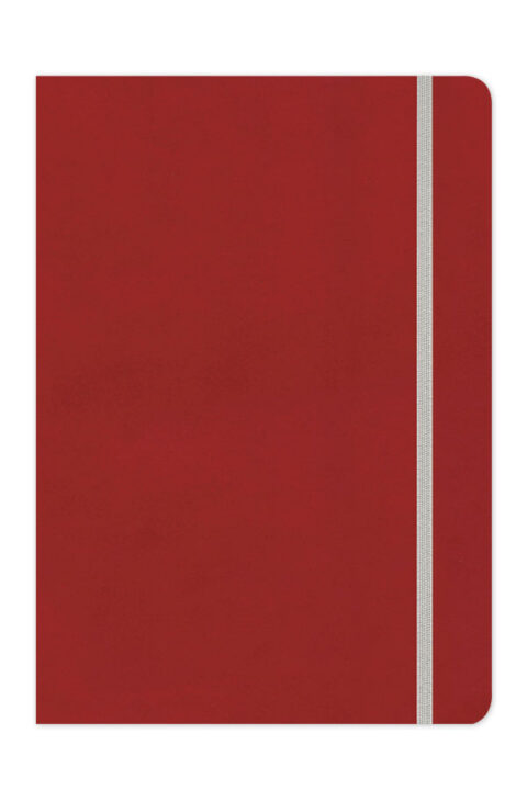 Notebook with hard cover, leather look material and elastic closure in many colours. Hard binding with rounded book corners.