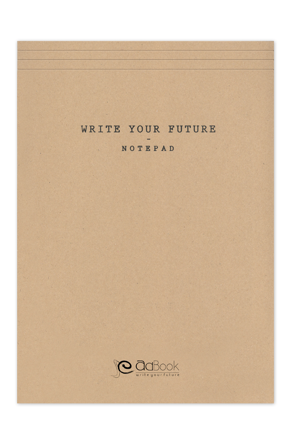 Notepad for daily notes. Board cover with one colour embossing. Hand thread sewing binding with exposed spine. Option of full rotation.